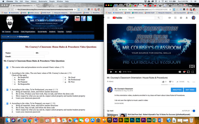 Mr. Coursey's Classroom House Rules & Procedures Video Questions